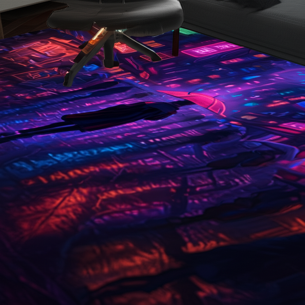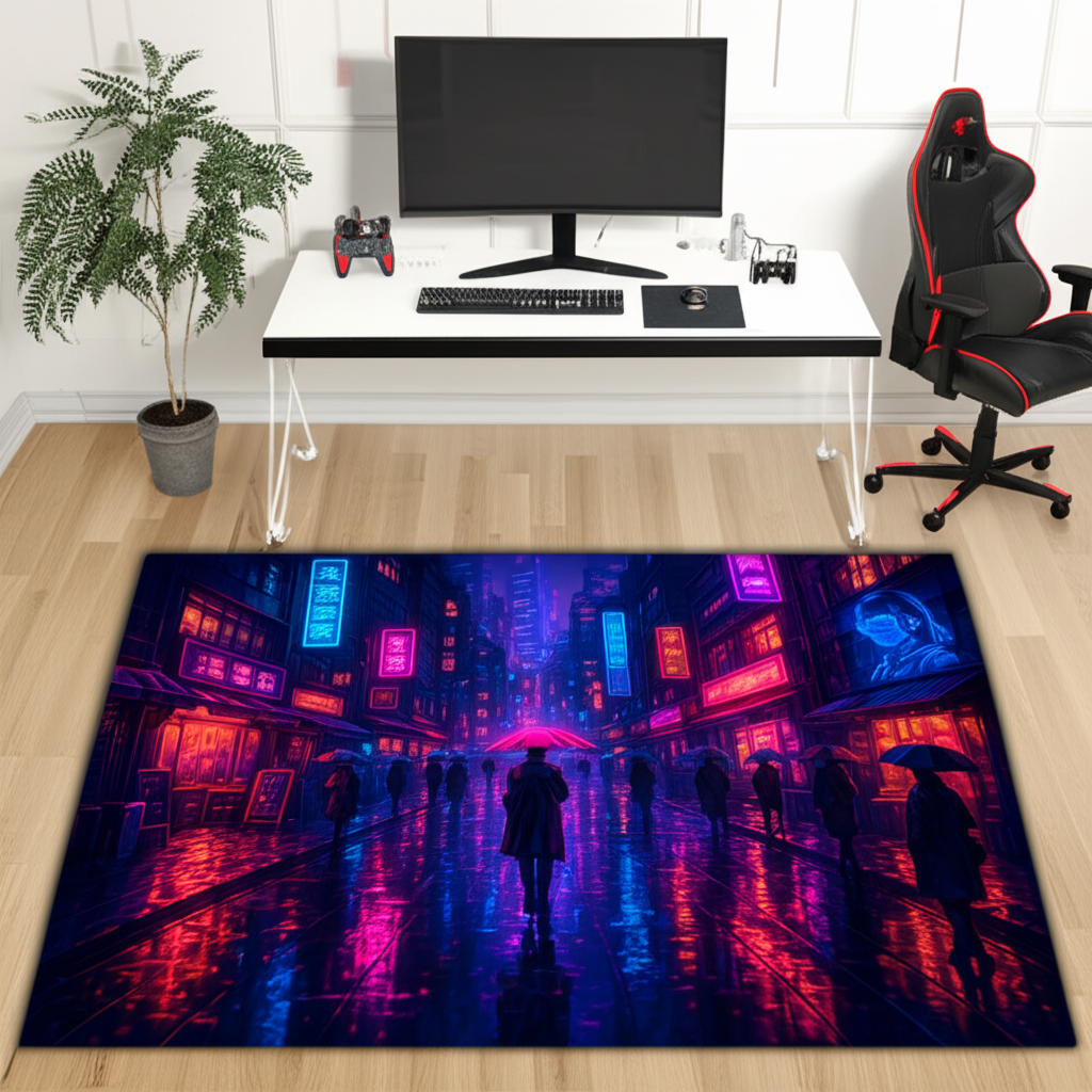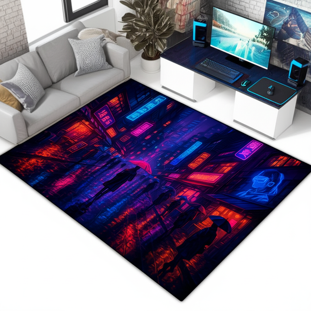 Transform your living space with our stunning Cyberpunk Cityscape Premium Rug. This visually striking rug captures the essence of a futuristic urban environment, featuring vibrant neon lights, sleek architecture, and a captivating nighttime atmosphere. Perfect for adding a touch of modern aesthetic to any room, this rug is sure to impress. Imagine this premium rug gracing your gaming room, office, or living area, creating an immersive and stylish setting. The detailed cityscape design, with its glowing signs and rainy reflections, brings a unique and edgy vibe to your home decor. It’s not just a rug; it's a statement piece that reflects your bold taste and love for contemporary art. This rug makes an exceptional gift for gamers, cyberpunk enthusiasts, or anyone who appreciates distinctive home accents. Surprise a loved one with this unforgettable piece that combines comfort, style, and artistic flair.