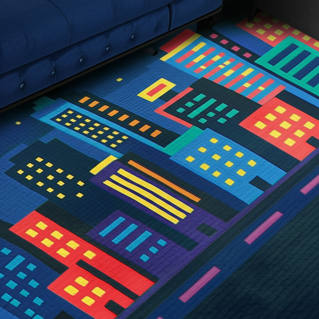 Step into a world where retro gaming meets home decor with our Pixel Cityscape Rug. This vibrant rug features a unique 8-bit design of a bustling cityscape under a pixelated moon, bringing a touch of nostalgia and modern style to any room. Perfect for gaming rooms, living spaces, or bedrooms, its eye-catching design adds character and a playful vibe.
