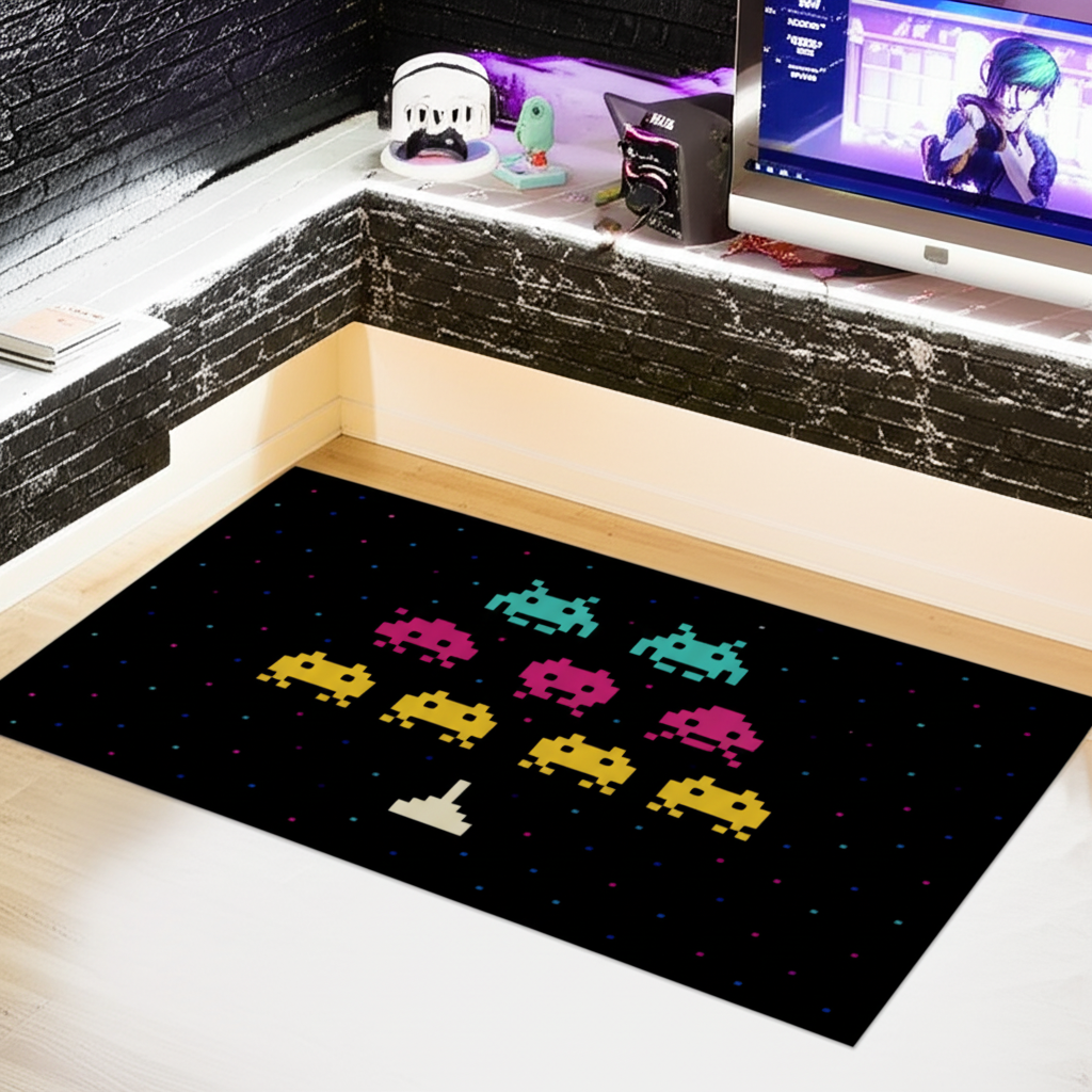 Imagine this rug anchoring your entertainment area, providing a soft and stylish surface for your feet as you conquer virtual worlds. Its eye-catching design is sure to spark conversations and bring back cherished memories of retro gaming. A thoughtful gift for gamers, tech enthusiasts, and anyone who appreciates a bit of retro flair.